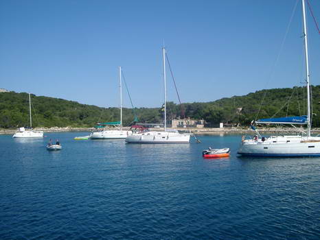 Mittagspause vor Anker zwischen den Inseln ZUT und ZUTSKA ABA fahren
