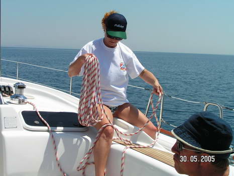 fahrt auch gleich mal los mit dem Manöverträning: Segel setzen, Segel
