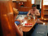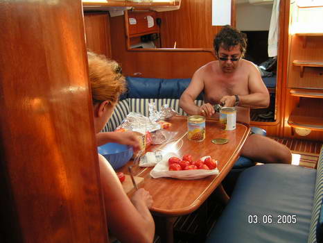 Bordküche kalt und wir lassen uns von unserem Dingikapitän Wolfgang in