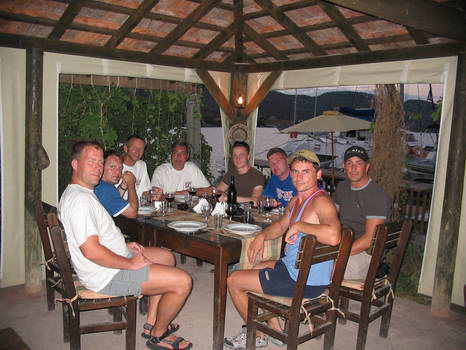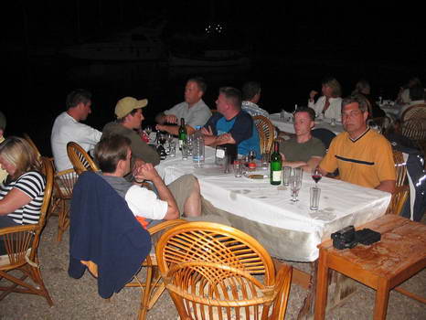 Muring an einem kleinen Holzsteg. Das Abendessen im Buchtrestaurant