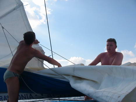 Aufbaus der Takelage an unserem Katamaran ist ein prüfungsmäßiger