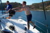 Bedienung der Großschot muss stark improvisiert werden. Anschließend