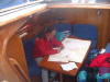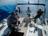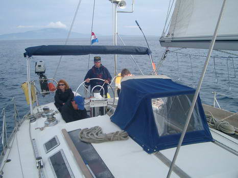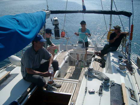 Schlechtes Wetter und Starkwind muss man erwarten wenn man im April einen Mittelmeertörn bucht. Und bei genau diesen, etwas anspruchsvolleren Bedingungen, sollte unser Skippertraining stattfinden. Genau das Gegenteil ist dann aber der Fall. Strahlender Sonnenschein, glatte See und fast kein Wind. Na gut, niemand ist deshalb wirklich traurig. Wir verlegen den Schwerpunkt einfach in Richtung Maschinenmanöver und auch hier hat unser Skipper, Wolfgang Stuis, noch einige neue Tricks auf Lager, die in keinem Lehrbuch zu finden sind. Und bei Wassertemperaturen um 16º ist - zumindest für einen Teil der Crew - das morgendliche Bad bereits obligatorisch.