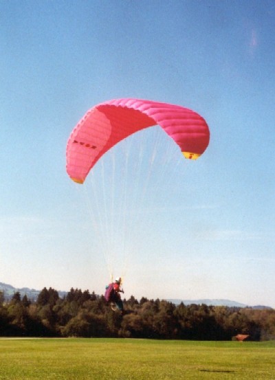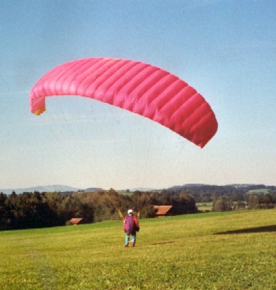 Nach ca. 30 Minuten landen wir wohlbehalten auf der Landewiese unterhalb des Tegelbergs ... und auch Gerald landet wohlbehalten wieder auf der Erde. |