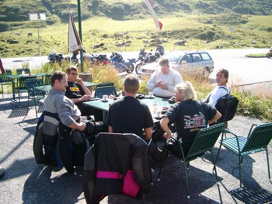 4. Tag, die letzte Tagestour in den Alpen steht an. Heute in östlicher Richtung. Über die Piller Höhe fahren wir rüber ins Piztal. Dann kurz über die 171 zum Silzer Sattel. Dort hoch, andere Seite wieder runter, und dann hoch zum Kühtai-Sattel. Hier gibt es erst mal einen guten Kaffee und eine super Aussicht gratis dazu (... nein Andreas, ich wollte die Tour wirklich nicht in einer Etappe durchfahren ;-). Weiter geht´s über den Brenner, Jaufenpass und das Timmelsjoch. Nachdem wir uns hier mit Suppe und Knödel gestärkt haben, fahren wir über Sölden und die Piller Höhe zurück zum Reschenpass. |
