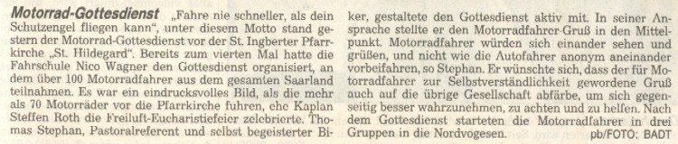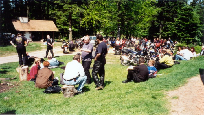 Anschließend machten wir uns in drei Gruppen auf den Weg in Richtung Dabo in den Vogesen, wo wir gegen 13.00 Uhr eintrafen. Nun hatten wir die ersten 125 km hinter uns und das Chaos am Grill vor uns. Bei einigen kam eine regelrechte Trappermentalität auf. Nach zwei Stunden hatte jedoch jeder seine Runde am Grill beendet. Nun war die Zeit zum Fachsimpeln über das beste Motorrad, die besten Reifen oder die noch bevorstehende Alpentour am 22.08.01 nach Nauders. Gegen 15.30 Uhr machten wir uns auf den Rückweg. Um 18.00 Uhr trafen wir beim THW-Fest in St. Ingbert ein wo es dann nahtlos in die "Abschlussbesprechung" überging.